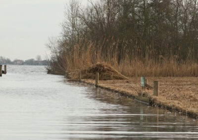 Om het voor de pleziervaart duidelijk te maken dat er op deze plek zo’n 10.000 kubieke meter wilgenmatten onder water geplaatst is, komt er nog wel iets van aanvaarbescherming en een bord met uitleg te staan. Een soortgelijk project als dit kwam recent tot stand in de Langeraarse Plassen wat een interessante en onverwachte uitkomst had. Daar resulteerde de aanleg onder meer in een broedkolonie van kokmeeuwen die er met hun aanwezigheid voor zorgen dat de ganzen uit de buurt blijven.