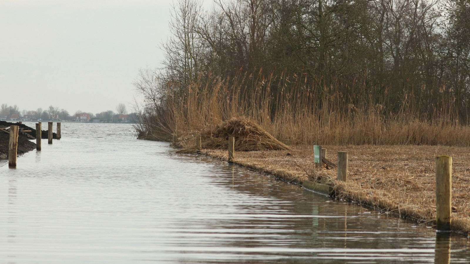 Om het voor de pleziervaart duidelijk te maken dat er op deze plek zo’n 10.000 kubieke meter wilgenmatten onder water geplaatst is, komt er nog wel iets van aanvaarbescherming en een bord met uitleg te staan. Een soortgelijk project als dit kwam recent tot stand in de Langeraarse Plassen wat een interessante en onverwachte uitkomst had. Daar resulteerde de aanleg onder meer in een broedkolonie van kokmeeuwen die er met hun aanwezigheid voor zorgen dat de ganzen uit de buurt blijven.